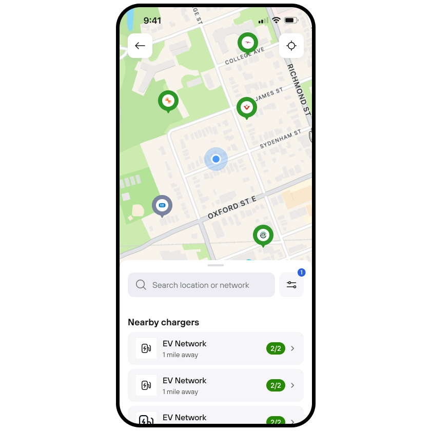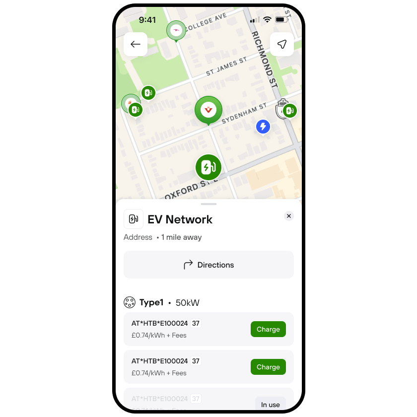 Powered by sister company Plugsurfing, the UK's largest network to charge your EV and pay in-app.